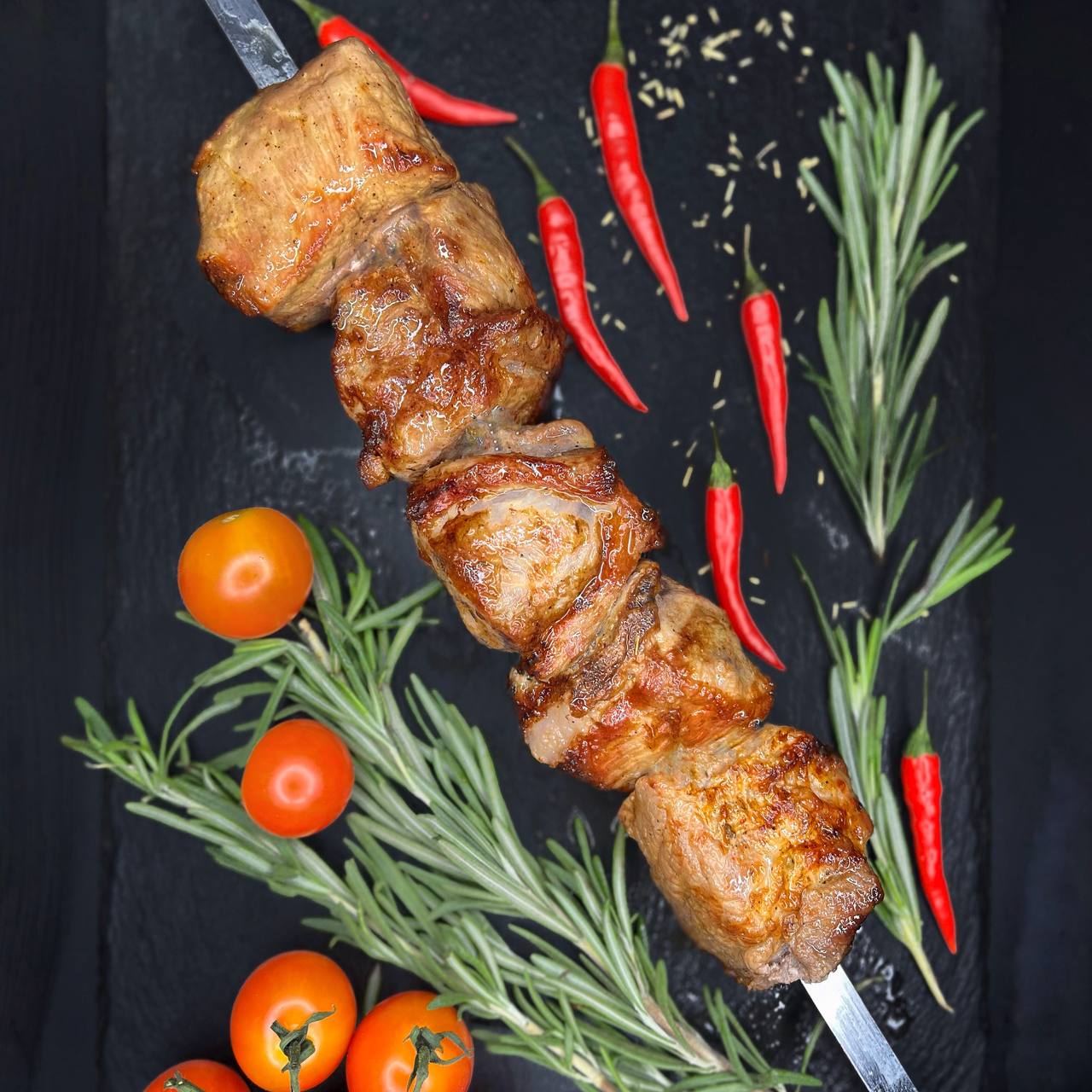 Мякоть свинины приготовленная на углях по специальному рецепту благодаря чему она остается мягкой, нежной и сочной